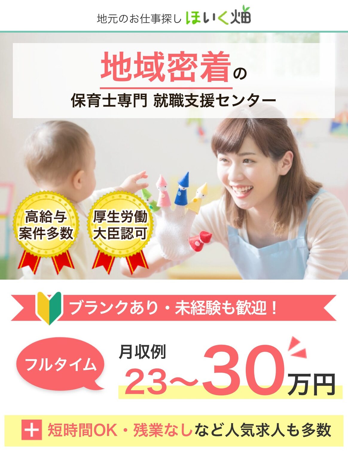 ほいく畑は、保育士・幼稚園教諭専門の求人専門サイト。