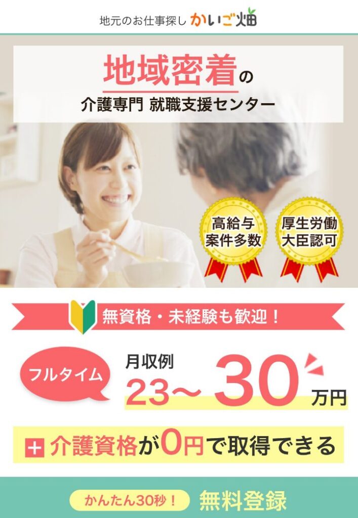 かいご畑は、介護の資格講座の受講料が0円になる『キャリアアップ応援制度』の利用ができる介護専門求人サイト。