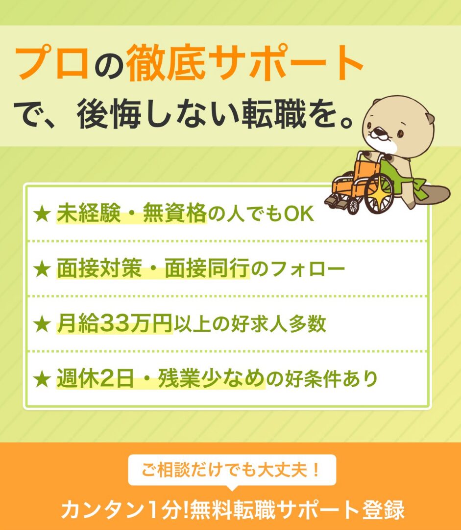 未経験から始めたとしても、入職後のギャップを最小限に抑えることができるから、初めて介護職につく方におすすめなんです。