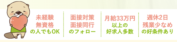 だから、月収33万円、週休2日などの好待遇のが増えているんです。