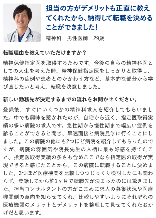 民間医局の転職成功事例