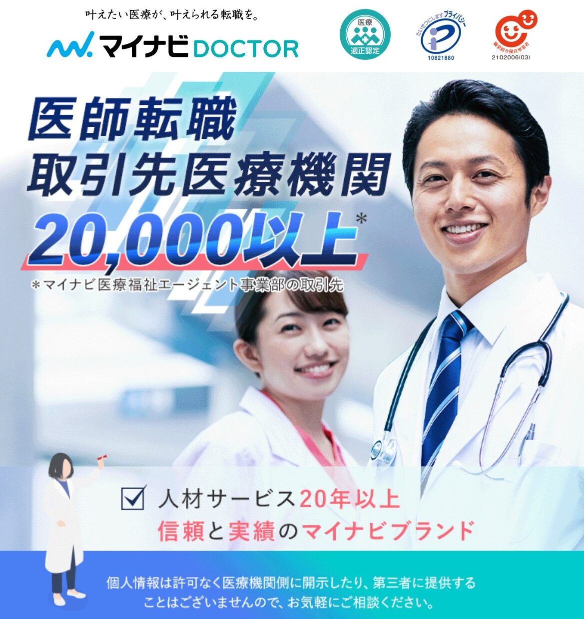 マイナビDOCTORは、人材サービス20年以上の転職実績・大手マイナビが運営する医師専門の求人紹介サービス。