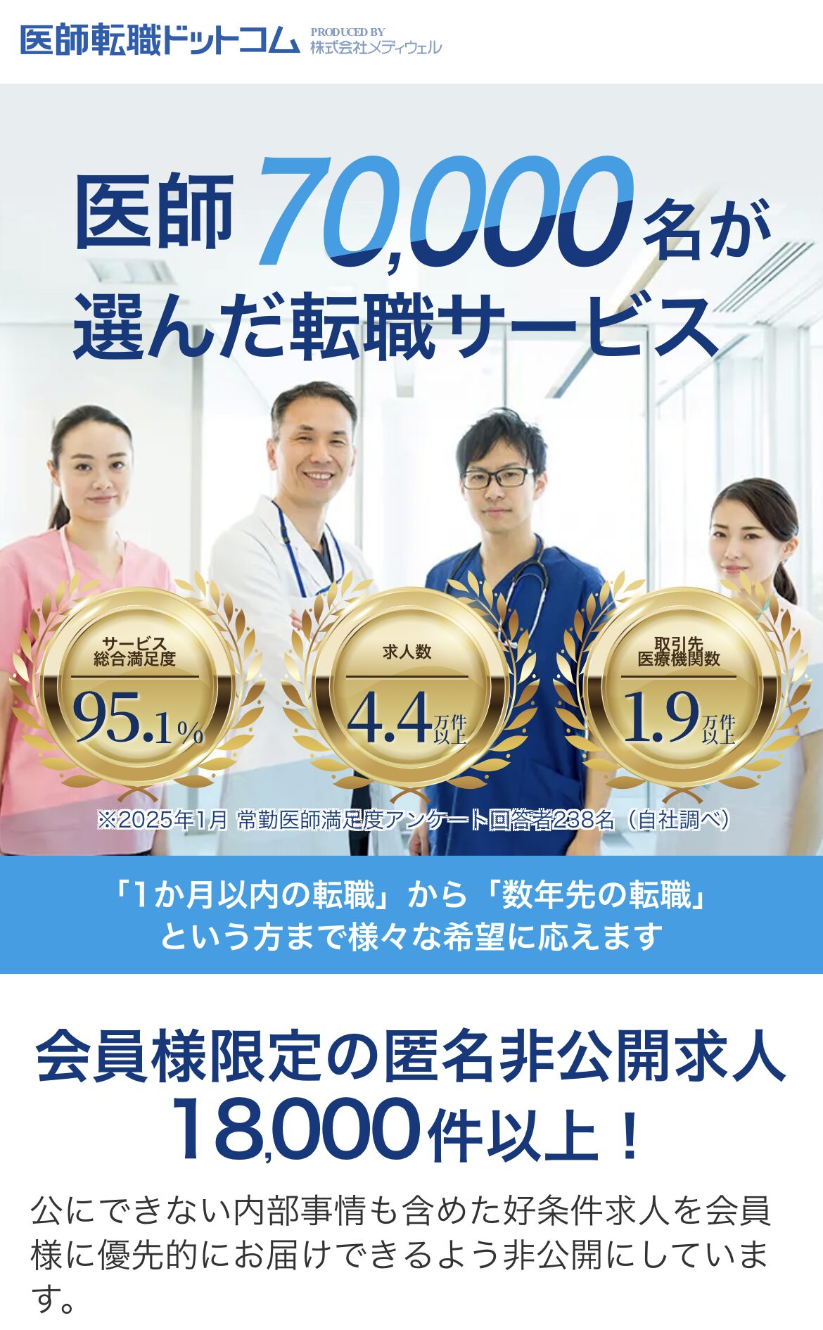 医師転職ドットコムは、業界最大級の求人掲載数39,000件以上・会員医師65,000名以上の医師専門の転職支援サイト。