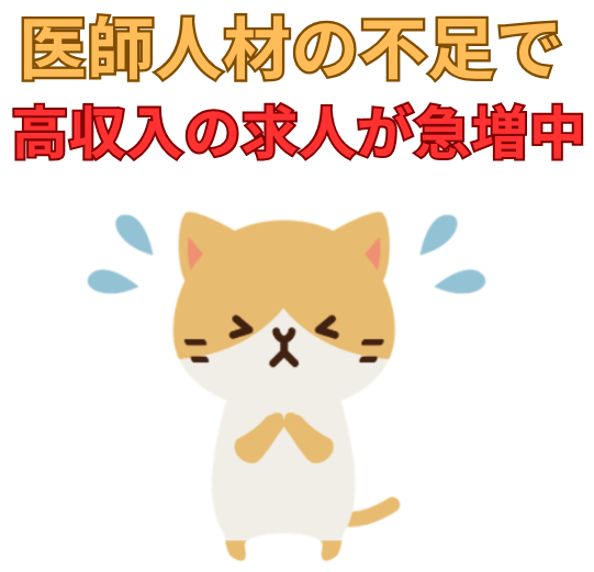 そこで、多くの病院やクリニックが、優秀な医師人材を確保すべく、高収入・高待遇の求人を打ち出しているんです!