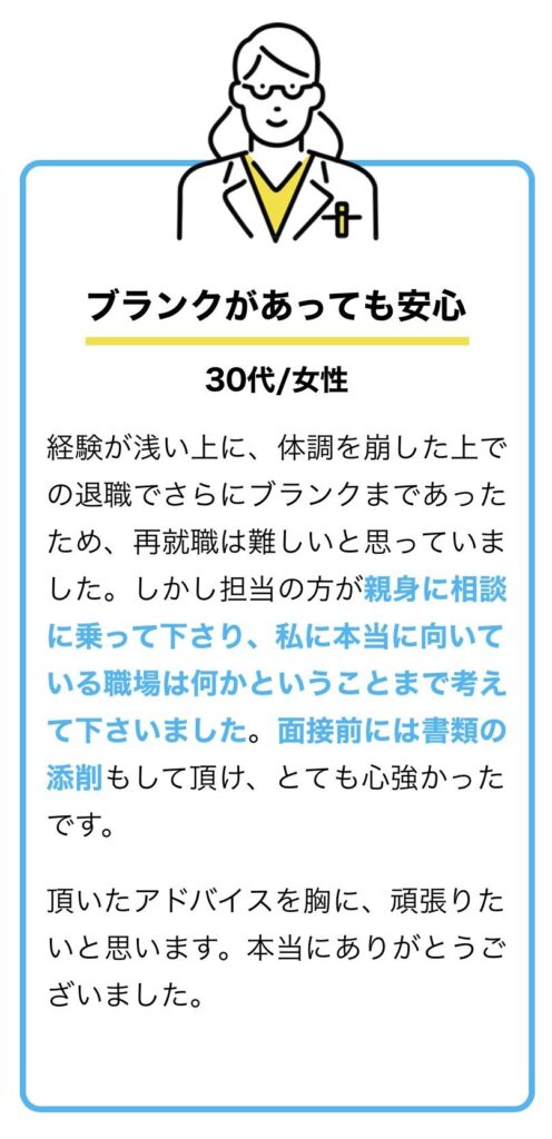 また、専門のキャリアアドバイザーがサポートしてくれるので、職場の雰囲気や人間関係についても事前に把握してから応募することできます。